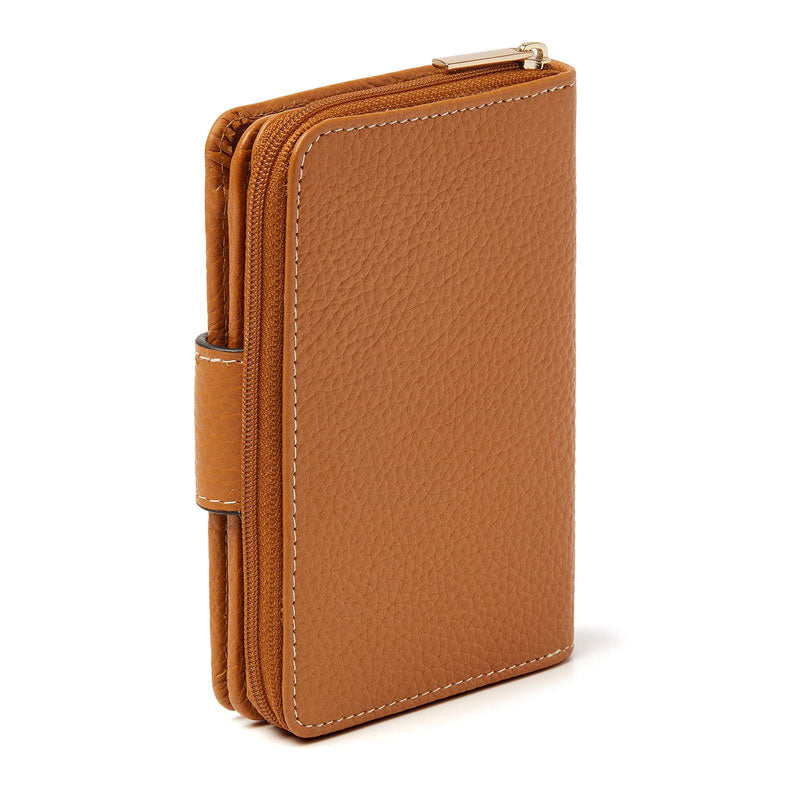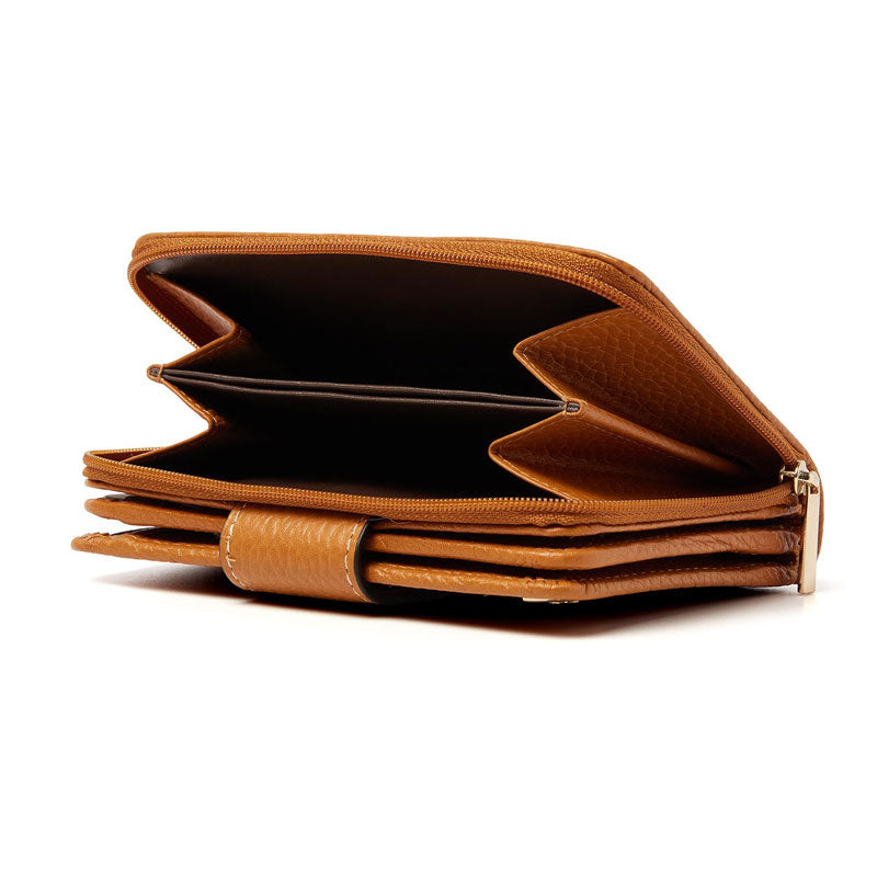 Deze portemonnee opent aan de voorzijde met een lip met drukker. Je krijgt dan toegang tot het papiergeldvak en de grote hoeveelheid pasjes- en insteekvakken. Het muntvak bevindt zich aan de achterzijde van de portemonnee. Dit muntvak is een ritsvak wat uit 2 delen bestaat. Hier tussenin zit een smal insteekvak waarin je bijvoorbeeld een boodschappenbriefje op kunt bergen.