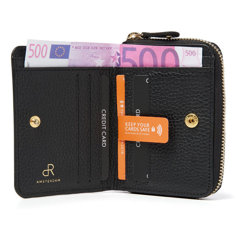 Deze portemonnee heeft rfid bescherming. Dit is een bescherming tegen het op afstand skimmen van de pasjes in je portemonnee. Een prettig en veilig idee.