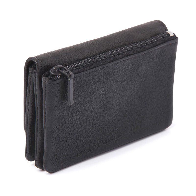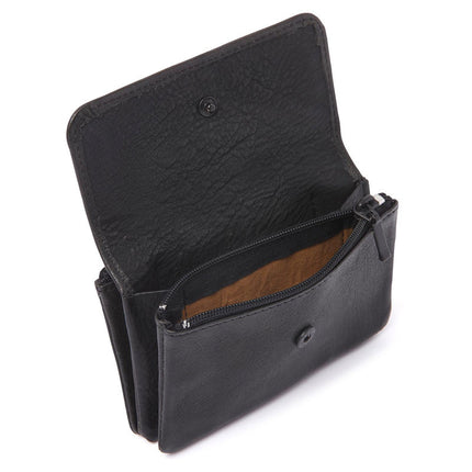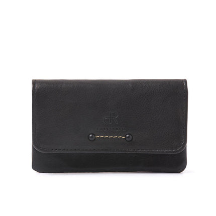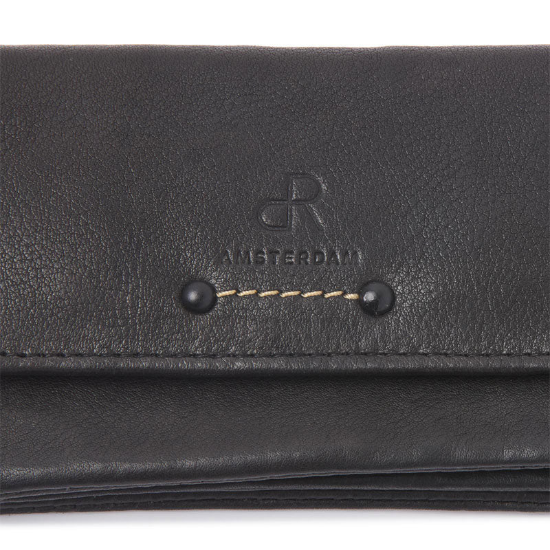 Kleine zwart leren multi functionele portemonnee dames met rits uit de Tampa collectie van het kwaliteitsmerk dR Amsterdam. Het is een portemonneetje maar in het achterste vak zit ook een sleutelring. Zo kun je in dit portemonneetje ook je sleutels opbergen.