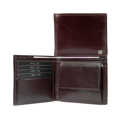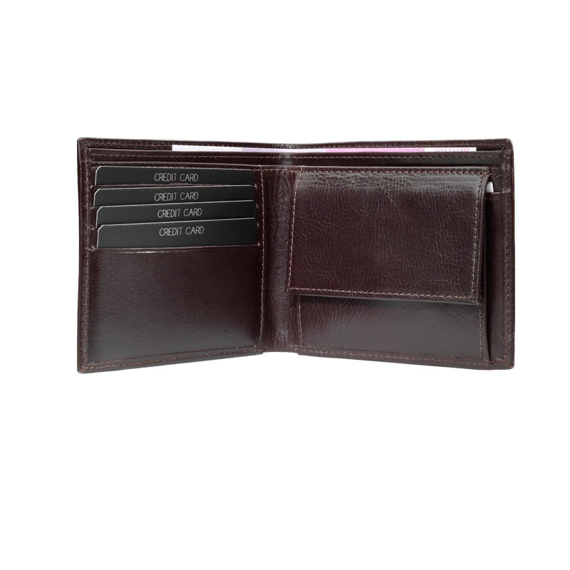 Links in de portemonnee kunnen 4 pasjes opgeborgen worden. Achter dit pasjesgedeelte zit een smal insteekvak. Rechts in de portemonnee bevindt zich het muntvak wat met een drukker wordt afgesloten. Het papiergeldvak bestaat uit 2 vakken en heeft een mooie stijlvolle voering.