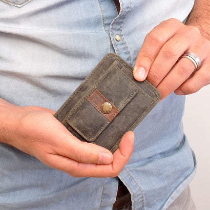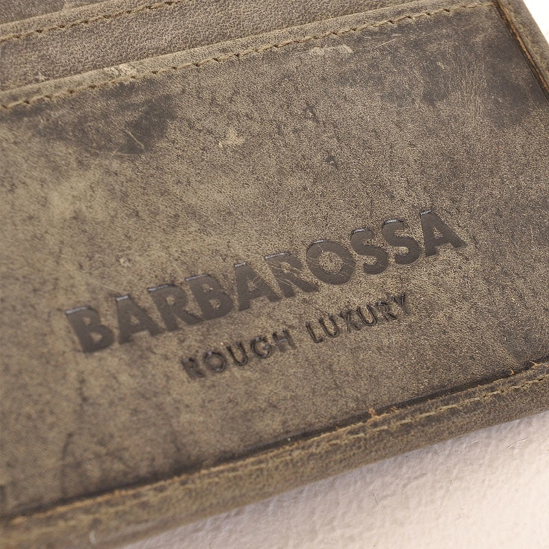 Kenmerkend voor dit merk is dat zij veelal gebruik maken van 2 kleuren leer in één product. Dit is ook zo het geval in dit portemonneetje uit de Berbarossa collectie. Zo is de hoofdkleur military en is op de voorzijde een stukje contrasterend leer in een bruine kleur verwerkt. Het gebruikte leer is geschuurd. Dit maakt dat het leer en daardoor ook het product karakter heeft. Een product van geschuurd leer heeft een stoere uitstraling.