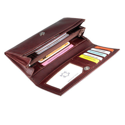 Deze dames huishoudportemonnee is van een praktisch formaat, van echt leer, en met vele opbergmogelijkheden. De indeling is als volgt: