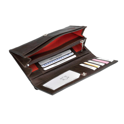 Deze dames huishoudportemonnee is van een praktisch formaat, van echt leer, en met vele opbergmogelijkheden. De indeling is als volgt: