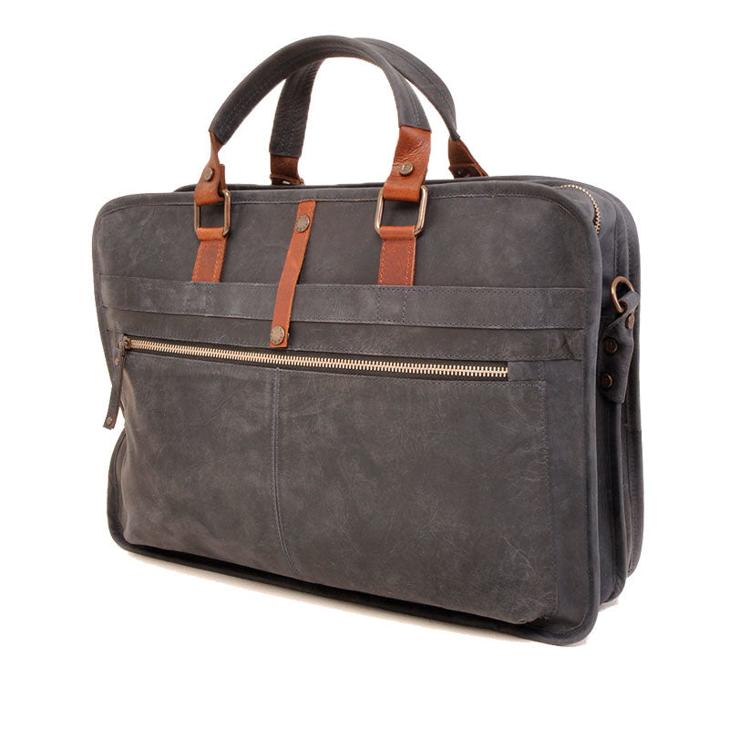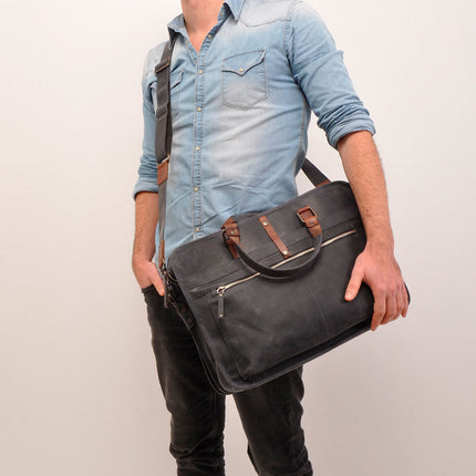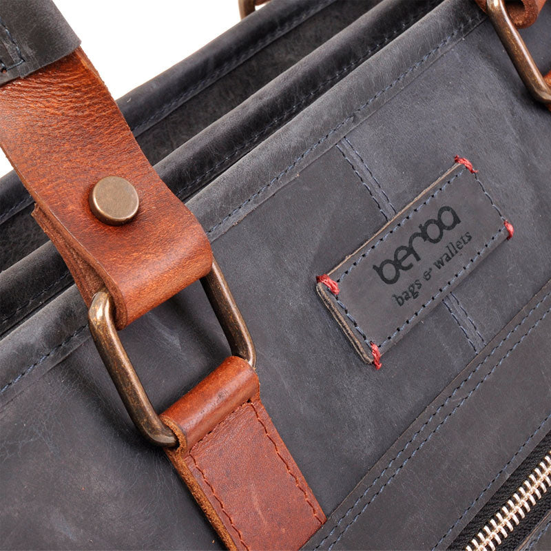 Super mooie stoere laptoptas uit de Bararossa collectie van het Nederlandse merk Berba. Een stoere tas in navy kleur. Bijna grijs gelijkend. Een stoere tas met rechtlijnig design uit duurzaam vervaardigd leer. Het leer is plantaardig gelooid en bovendien is er bij de productie bijzondere aandacht voor eerlijke productie onder eerlijke omstandigheden. De Barbarossa tassen worden vervaardigd in gecertificeerde fabrieken met respect voor de medewerkers en hun omstandigheden.