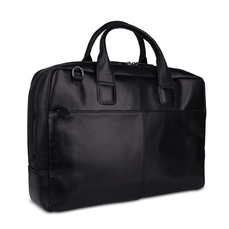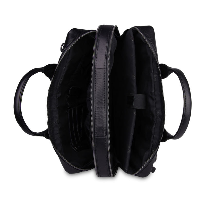 Deze tas heeft op zowel de voor- als achterzijde een ritsvak. De tas heeft twee hoofdvakken. In een van deze vakken zit een gepolsterd laptopvak. Je laptop is zo veilig en beschermd opgeborgen. De hoofdvakken zijn goed toegankelijk doordat de ritsen doorlopen tot bijna aan de onderzijde van de zijkant van de tas.