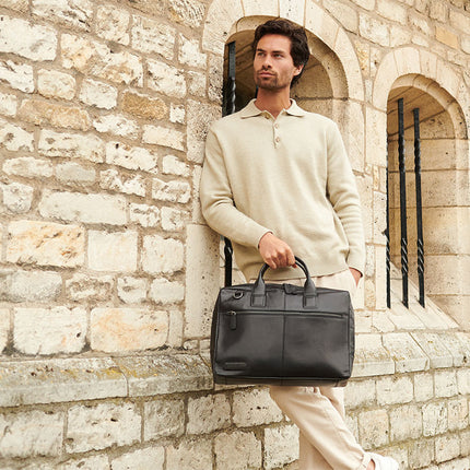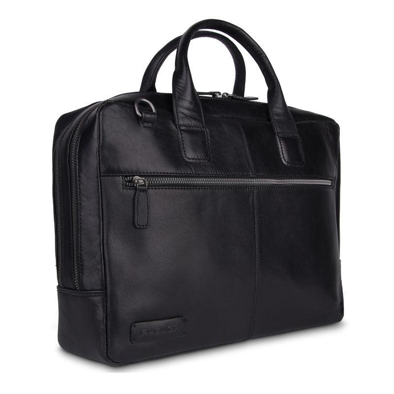 Een mooie zwart lederen laptoptas voor het veilig vervoeren van je laptop naar je werk. Maak kennis met tas Flint. Tijdloos zwart, duurzaam geproduceerd en stijlvol van uitstraling. Deze tas Flint van het merk Plevier is gemaakt van volnerf gewaxt leer. Leer met een zijdeglans, een mooie structuur. Leer wat door het gebruik nog mooier wordt. Deze tas is geschikt voor een laptop van 15 - 15,6 inch.