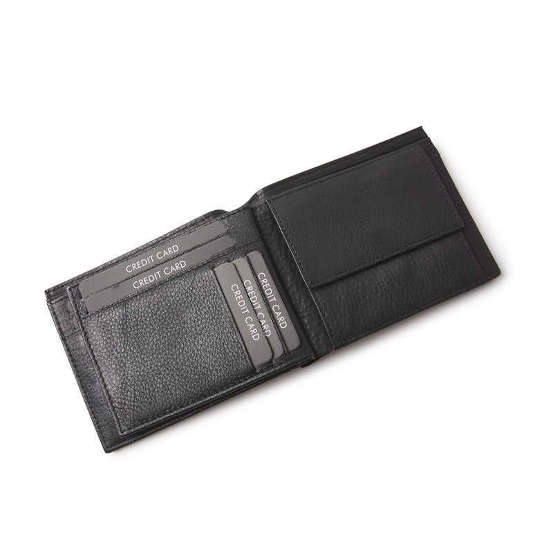 In de linkerzijde en in de flap in het midden van de portemonnee is opbergruimte voor 11 pasjes. Een pasjesvak is een venstervak, waar bijvoorbeeld ook foto's in opgeborgen kunnen worden. Er is een smal insteekvak. Rechts in de portemonnee bevindt zicht het muntvak. Het papiergeldvak bestaat uit 2 delen en heeft de breedte van de open geklapte portemonnee.