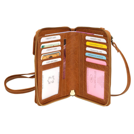 Het is een portemonnee met verstelbare schouderband. Duurzaam doordat deze in leer is uitgevoerd. Ga je op reis, een avondje uit, of gewoon wat boodschappen doen. Superhandig dat je je pasjes en geld in een tasje bij je kunt dragen.