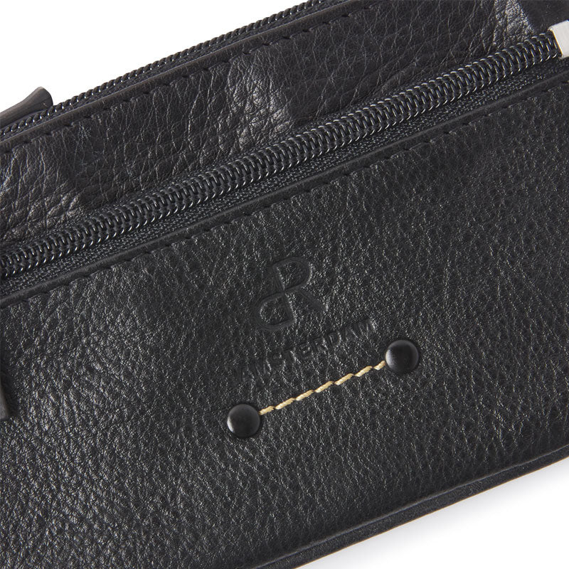 Bijzonder aan deze sleuteletui zijn de kleine details zoals het stiksel en zwarte studs op de voorzijde van de sleuteletui. De zwarte lipjes van de ritsen en de zwarte sleutelringen. Maar ook het logo van dR Amsterdam wat op subtiele wijze in het leer is gestanst op de voorzijde van de etui.