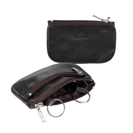 In het hoofdvak van deze sleuteletui zitten 2 ringen om sleutels aan te bevestigen. De ene ring zit links, de andere rechts in de etui. Dit hoofdvak wordt met een rits afgesloten. Op de voorkant van de sleuteletui zit een opbergvak wat wordt afgesloten met een rits. Voor een pasje is dit voorste ritsvak net iets te klein. Je kunt er bijvoorbeeld wel wat geld in opbergen. Je hoeft dan niet op stap met een grote portemonnee maar gewoon met je mooie en vooral erg praktische sleutelmapje. Wat deze sleuteletui afmaakt is het logo van het merk dR Amsterdam. Dit logo is in het leer van de achterzijde van de sleuteletui gedrukt. Of wel een super mooie sleuteletui. Mooie, goede kwaliteit, mooi leer, praktisch en dat allemaal voor een uitstekende prijs.
