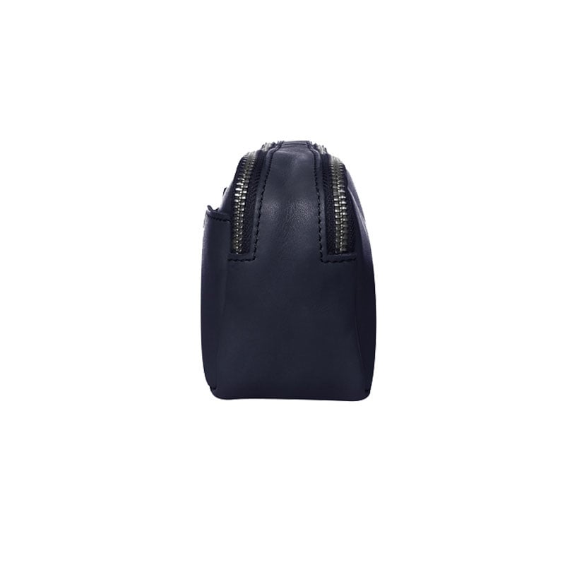 Een toilettas is praktisch. Je kunt deze gebruiken voor als je met vakantie of op zakenreis gaat. Deze toilettas bestaat uit 2 vakken. Deze 2 vakken worden met stevige metalen ritsen afgesloten. In het achterste vak zit ook nog een klein ritsvakje. Op de voorzijde van de tas bevindt zicht een insteekvak. Bijvoorbeeld voor het opbergen van een oogpotlood of kam. Aan de zijkant van de tas zit een bandje wat je als handvat kunt gebruiken. De kleur van deze toilettas is Midnight blue. Een mooie donker blauwe kleur. De tas heeft hierdoor een vrouwelijke uitstraling